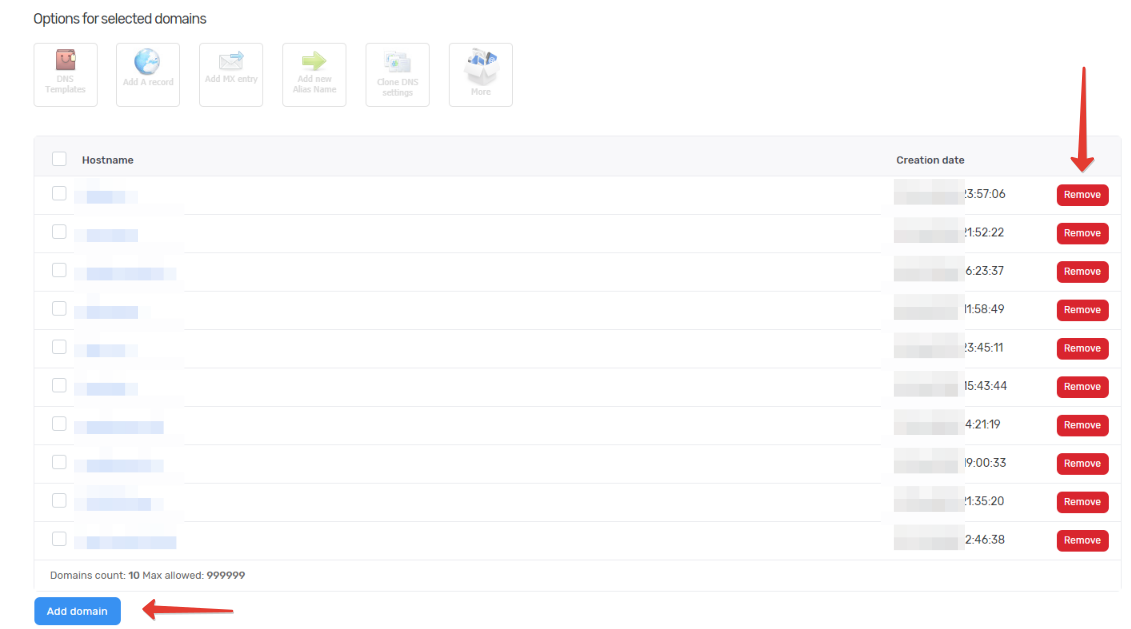 After that click on the button "Add domain" to add a new domain or "Remove" to remove a domain :